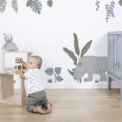 Lilipinso Stickers Et Papiers-peint Enfant Planche De Stickers Décor L Les Rhinos Multicolore