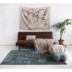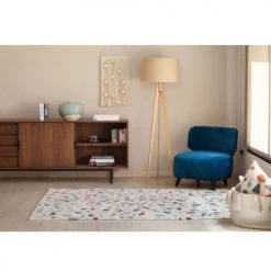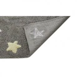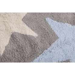 Lorena Canals Tapis Enfant Tapis Coton Motif 3 étoiles Tricolore Gris- Jaune -bleu 120x160cm