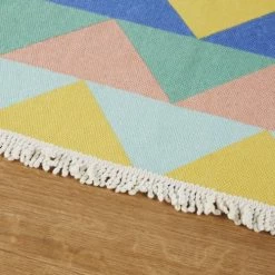 Maisons Du Monde Tapis Enfant Tapis Coloré Imprimé Triangle Bleu, Vert, Jaune à Franges 60×120