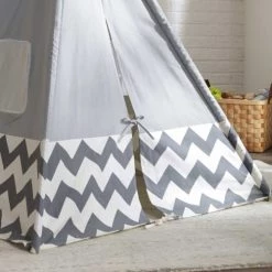 Beeloom Tipis Enfant Tente Tipi Pour Enfants En Bois Naturel Et Polyester Blanc Et Gris