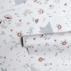 Créez un joli marin fleuri. Avec ce papier peint la chambre se transformera en un aquarium géant avec des raies manta, des tortues d’eau, de jolis poissons, des petits crabes, des méduses, des coraux, de jolies fleurs et des hippocampes. Le résultat est fantastique!