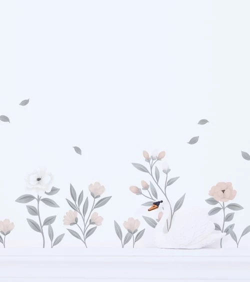 Créa un décor avec de jolie petites fleurs. Un style délicat et raffiné avec des couleurs douces et rabattues.
