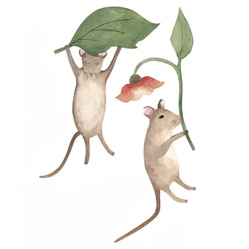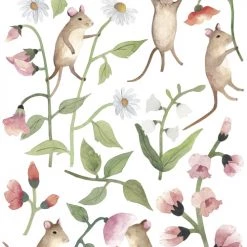 Créez un déco composé de petites souris, de feuilles et de fleurs.Un style délicat et raffiné. Des couleurs douces pour un décoration parfaite pour le nid de bébé.