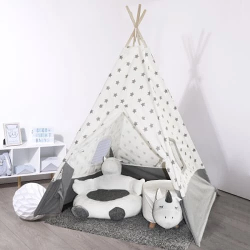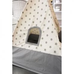 Beeloom Tipis Enfant Tente Tipi Pour Enfants En Bois Naturel Et Polyester Blanc Et Gris
