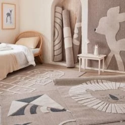Nazar Tapis Enfant Tapis Beige Et Crème Motif En Relief Lapin Doux – 80×150