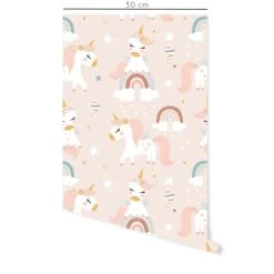 Decochic Stickers Et Papiers-peint Enfant Papier Peint Vinyle Adhésif Licornes Rose 50×300 Cm