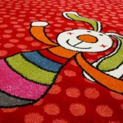 SIGIKID Tapis Enfant Motif Lapin Coloré Sur Fond Pois Rouge 120×170