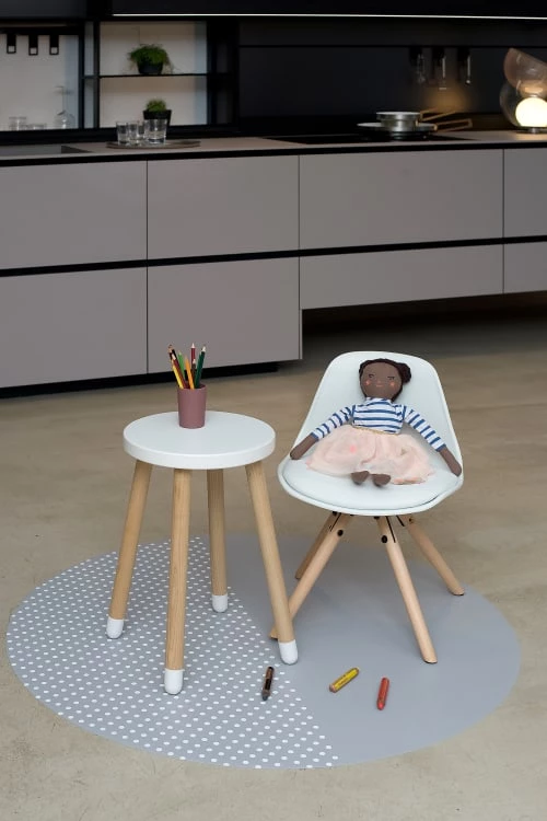 Avec leurs dimensions idéales, 105 cm de diamètre et 1 mm d’épaisseur, ils trouvent facilement leur place sous une chaise haute.