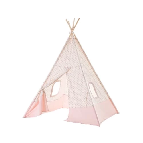Beeloom Tipis Enfant Tente Tipi Pour Enfants En Bois Naturel Et Polyester Blanc Et Gris